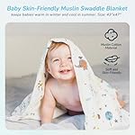 Versatile Baby Swaddle Blanket: Each and every mom needs this versatile muslin swaddle blanket. Crafted from 100% cotton, it’s ultra-soft and breathable, ideal for delicate baby skin. Free from chemicals, it ensures your baby’s safety. With a generous size of 43″ x 47″, it may be used as a receiving blanket, nursing cover, stroller sunshade, burp cloth, play mat, or mini crib sheet
