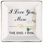 💓WORDS OF LOVE – The words on the ring dish holder and card are probably going to be the best thing ever for your wife, ‘I Love You More. THE END. I WIN’. Read them slowly in your mind and you will yourself know the beauty of these words. Every time she sees the small jewelry dish she will feel important, appreciated and loved, and the beautiful words will bring a big smile to her face.