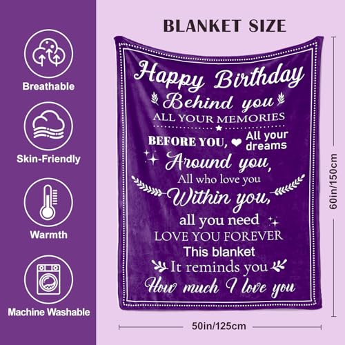 Home Birthday Gift Ideas birthday gifts for women Birthday Gifts for Women Friendship Birthday Blanket Mom Birthday Gifts Happy Birthday Decorations Unique Birthday Gifts for Women/Men/Mom/Grandma/Wife Purple Birthday Throw Blanket 50”x60”