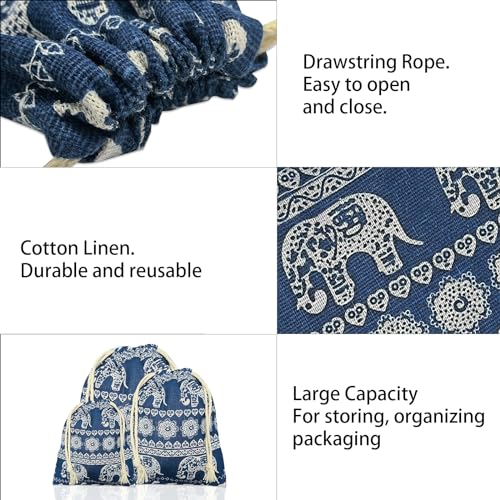 Material: The elephant pattern drawstring gift bags are made from durable, reusable cotton linen.