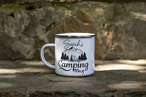 Personalised Camping Mug Enamel Cup Indoor Outdoor Gift for Men Ladies Mum Dad Children Tea Coffee Gifts Camper Holidays Adventure Tent Accessories Birthday Christmas Present