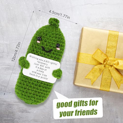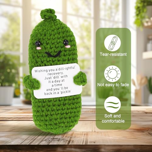 TOYMIS Get Well Soon Pickle, Green Funny Positive Cucumber with Card Woolen Yarn Gifts for Family & Friends after Surgery Knitted Emotional Crochet Doll Healing Gift for Encouragement Support